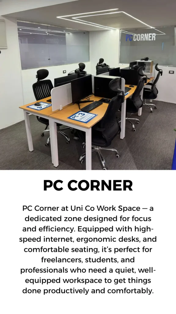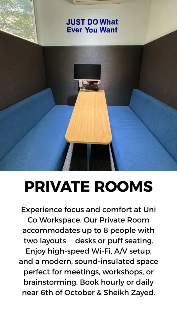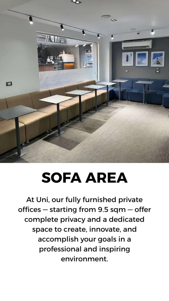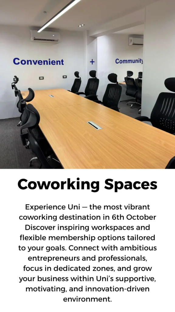 Uni is redefining the coworking experience in Egypt, offering modern, flexible, and inspiring spaces designed to elevate the way professionals work and connect. Located in 6th of October and El Sheikh Zayed, Uni provides coworking memberships, day passes, and fully furnished private offices tailored to your goals. With meeting rooms, event spaces, dedicated support, and an in-house café, Uni creates an environment that nurtures creativity, collaboration, and lasting success.